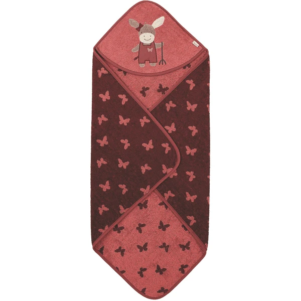 Badcape van zachte badstof met geappliqueerd borduurmotief ezel “Emmily”. De knuffelgarantie volgens de B aden .