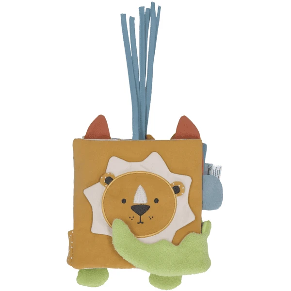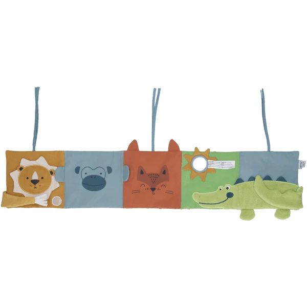 - Babyspeelboek Ark van Noach van katoenen stoffen, met rammelaar, spiegel, knisperpapier en pieper
