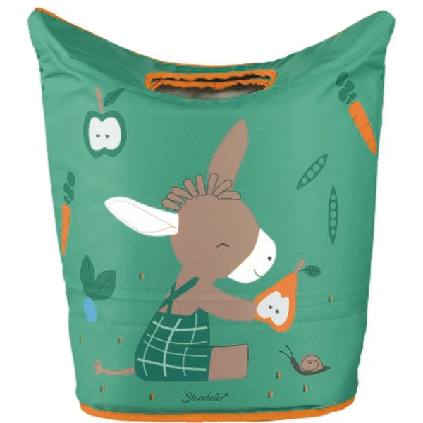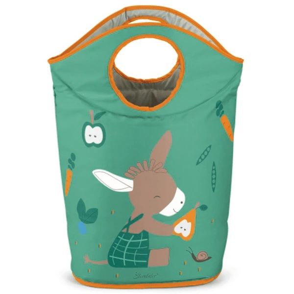 Praktische opvouwbare opbergmand met het motief “Emmilius” ezel. Wanneer de twee handvatten neergeklapt zijn, is er een ronde opening om het wasgoed in te doen. Als de wasmand vol is, kan hij gemakkelijk worden weggedragen. Als hij niet nodig is, kan hij worden opgevouwen om ruimte te besparen. De mand kan ook gebruikt worden om knuffels in op te bergen.