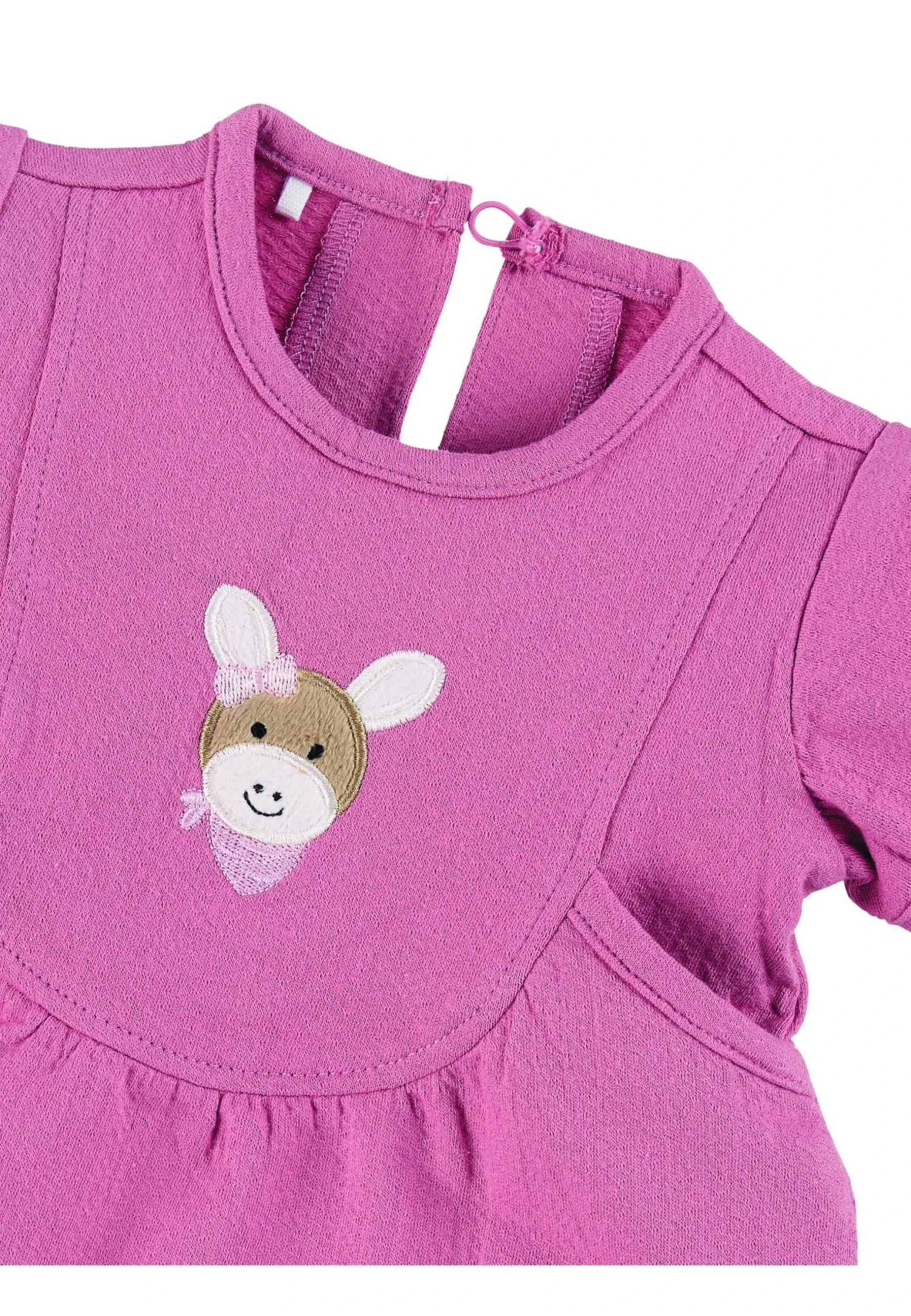 - Knoopsluiting achter en met applicatie “Emmi Girl” voor