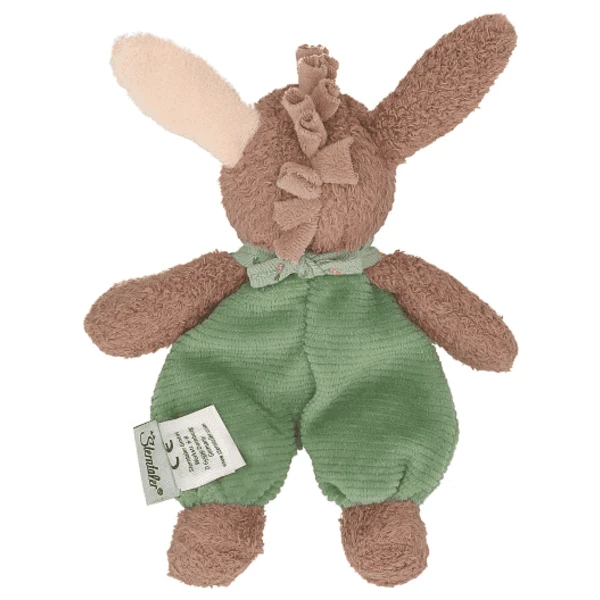 Het minispeeldier Emmilius van pluizige stof en velours is een ideale metgezel voor uw kleine lieveling, met een ingezette rammelaar in het hoofd.