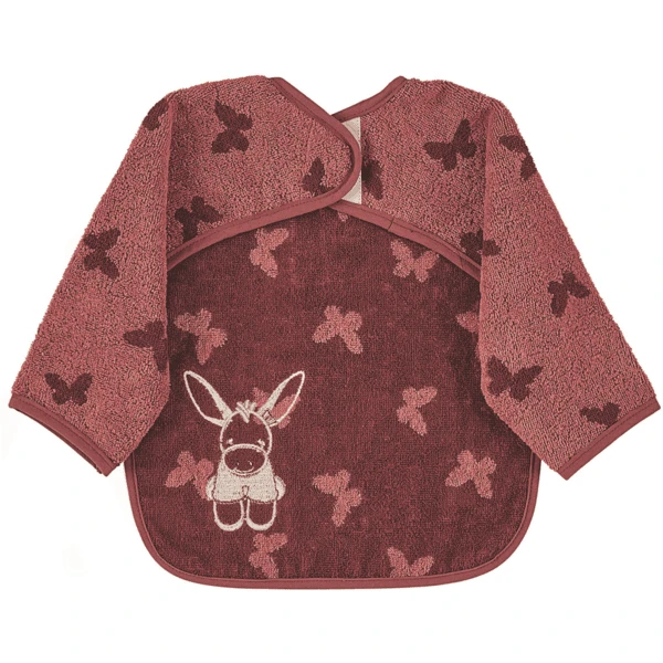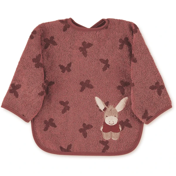 Mouwslabbetje met praktische klittenbandsluiting in aangename badstofkwaliteit, met opgestikt borduurmotief ezeltje “Emmily”.