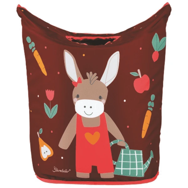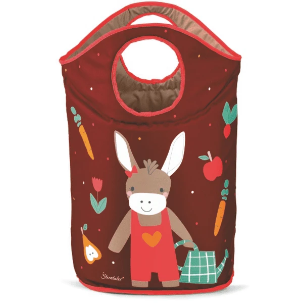 Praktische opvouwbare opbergmand met het motief ezel “Emmily”. Als je de twee handvaten naar beneden klapt, is er een ronde opening om het wasgoed in te doen. Als de wasmand vol is, kan hij gemakkelijk worden weggedragen. Als hij niet nodig is, kan hij worden opgevouwen om ruimte te besparen. De mand kan ook gebruikt worden om knuffels in op te bergen.