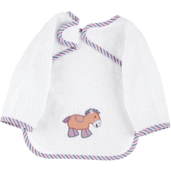 Slabbetje met praktische klittenbandsluiting in aangename badstofkwaliteit, met geappliqueerd borduurmotief Pony “Pauline”.