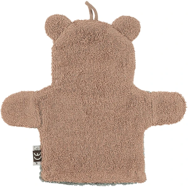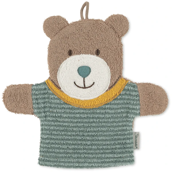 2 in 1: Washandje en handpop beer “Ben” van badstof zorgen voor veel wasplezier.
