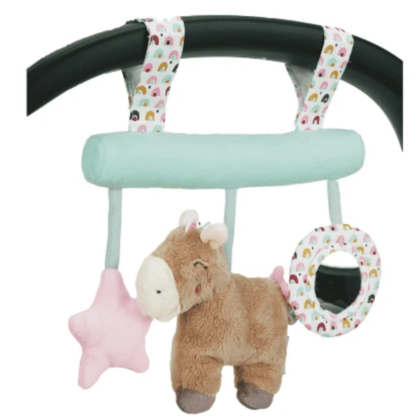 Chloorbleken niet mogelijk. Drogen in de droger niet mogelijk, geen reiniging mogelijk, niet strijken. Om mogelijke verwondingen te voorkomen door het koord om het speelgoed te wikkelen, moet dit speelgoed worden verwijderd zodra het kind op handen en knieën begint te staan in een kruiphouding. Voor de veiligheid van het kind moeten beide uiteinden van de transportketting altijd stevig bevestigd zijn.