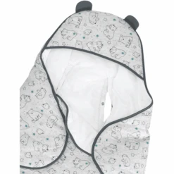 Pluizige deken van microfleece met aangezette Muis Babel en riemspleet. Hiermee wordt uw baby in elke situatie snel en warm ingepakt.